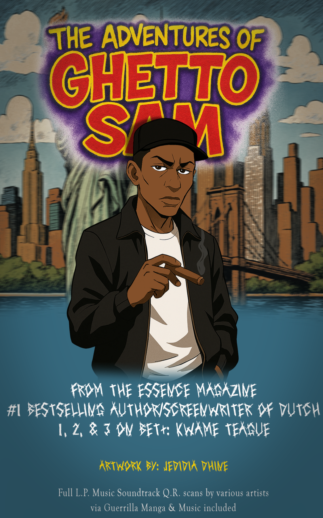 "The Adventures of Ghetto Sam" is the 1st light novel by famed Hollywood author/screenwriter Kwame Teague aka DUTCH & illustrated by Jedidia Dhine. This zany urban action comedy follows the hood homie Ghetto Sam in his Canibus minded exploits, encountering an Beautiful African Princess in NYC running from assassins following a political coupe on her father, The king, and pulls Sam into a life-threatening situation that challenges his heart, strength, and Gangster code. Readers can scan the imprinted QR codes to listen to the soundtrack included from artists like: Kalomo Wazo, ChinaTown Runner, Ds Songo, A'siya Camellia, Big Cindy, Kha-U, Kobayashi & More!!